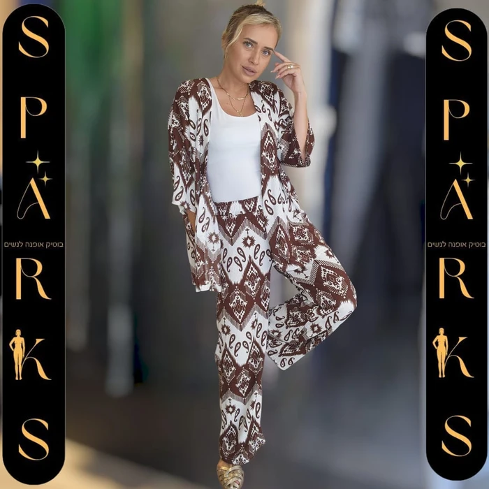 חליפת TROPI חום-לבן